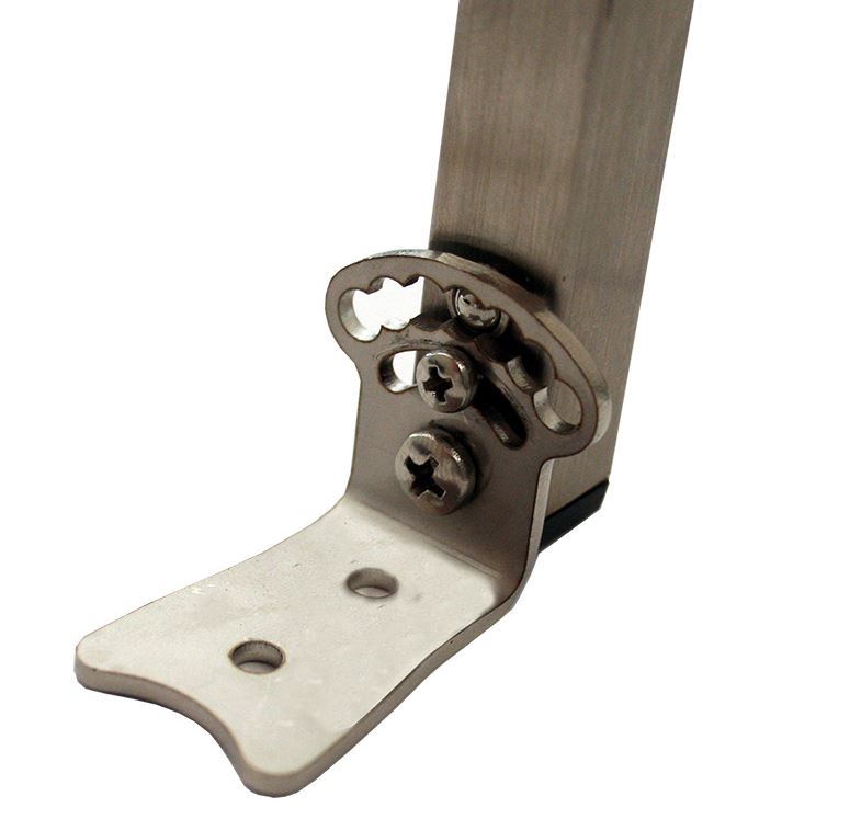 Крепление к лодке имеет регулируемый поворотный механизм с углом до 900 , что позволяет поднять датчик из воды во время перехода на большой скорости с одного места исследования водоема на другое, не снимая всю струбцину с лодки.