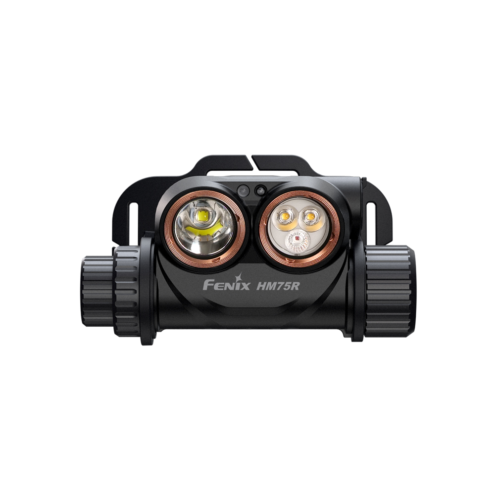 Модель оснащена тремя светодиодами: 2 холодных белых — LUMINUS SST40 и LUMINUS SST20 и один красный — OSRAM GR QSSPA1.23. Каждый светодиод имеет гарантированный срок службы 50 000 часов. Fenix HM75R SE автоматически регулирует яркость, чтобы избежать перегрева и потенциального риска возгорания. Переход между режимами осуществляется с помощью поворотного переключателя и электрической кнопки.