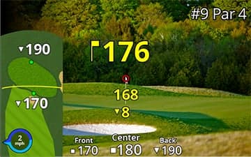 Наложения карты показывают расположение лунок, поэтому вы знаете расстояние до задней, средней и передней части грина.